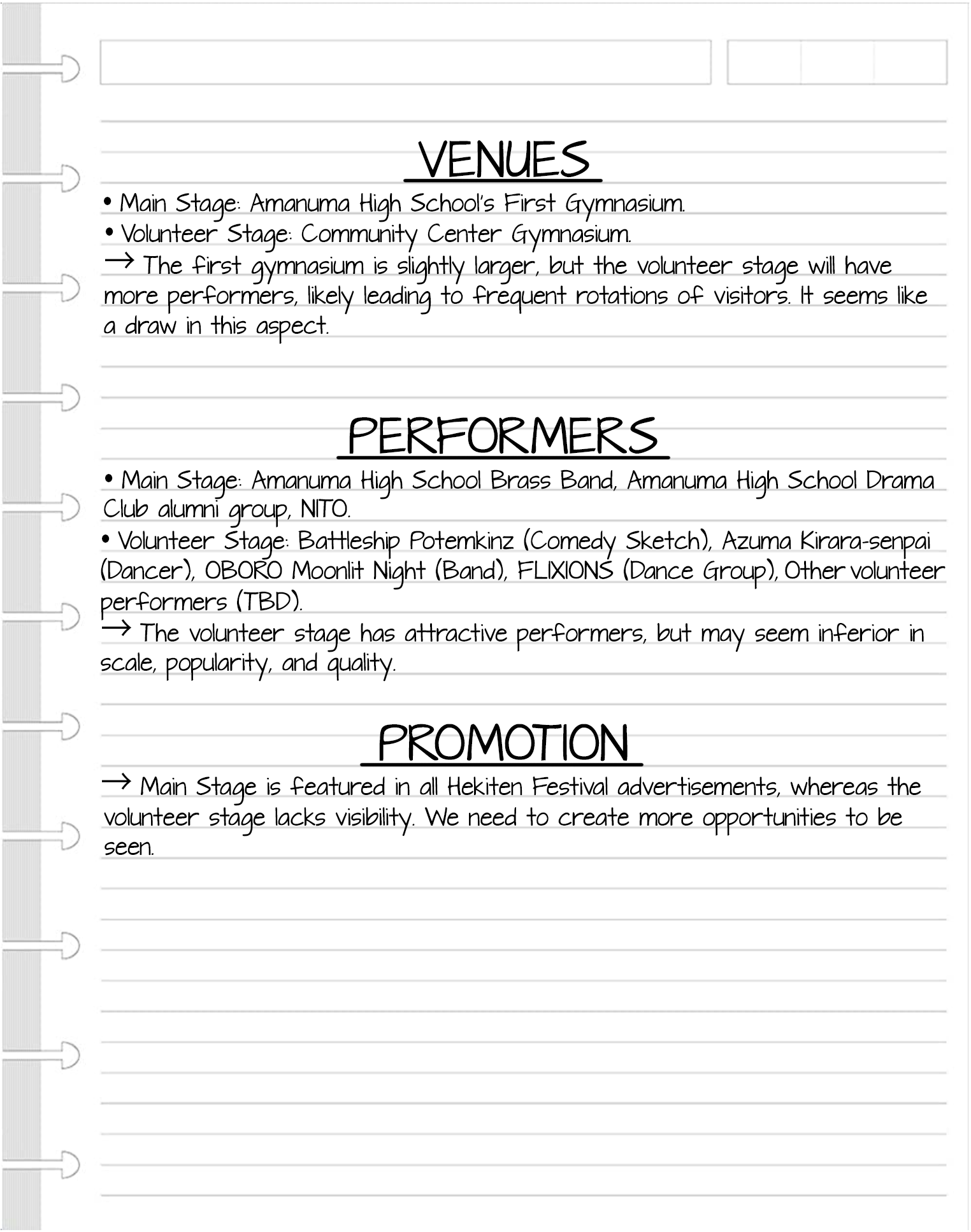 “...Baiklah, tempat acaranya sudah siap. Para pengisi acara yang kita rekrut juga sudah siap tampil.”
